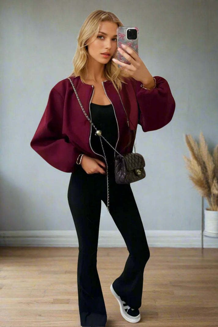 This classic bomber jacket features a stylish zip up design, perfect for any outfit. Made with high-quality materials, it provides both comfort and durability for all-day wear. Stay on trend and elevate your style with this must-have piece.